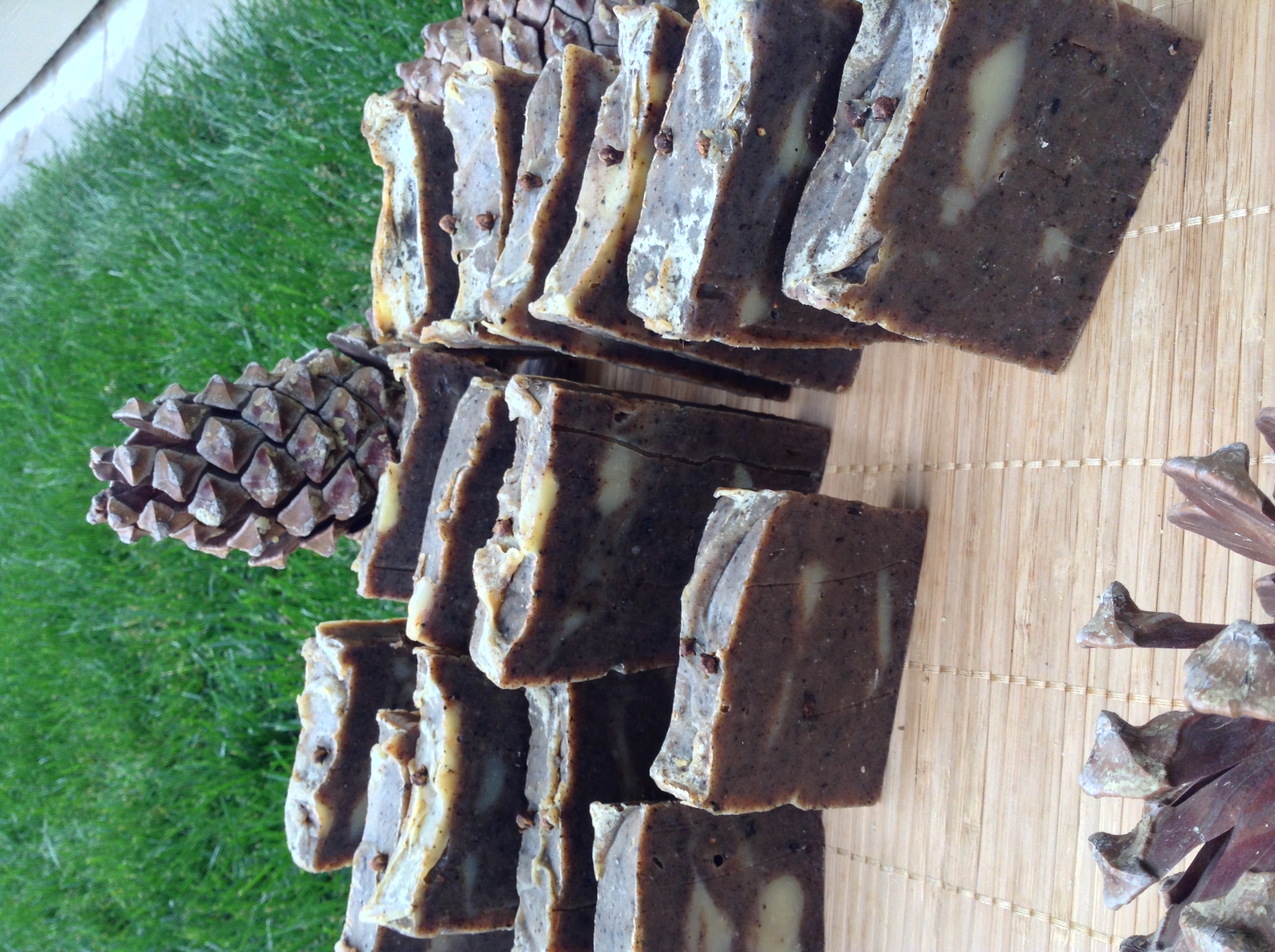 Made with Olive oil, Coconut oil, coconut milk, cocoa butter, shea butter, cocoa powder, cloves, coffee.